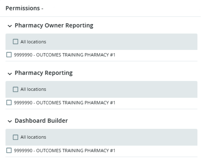 Pharmacy Owner Reporting: Will grant access to Outcomes Insights with Owner permissions which includes the ability to view all available Insights Dashboards